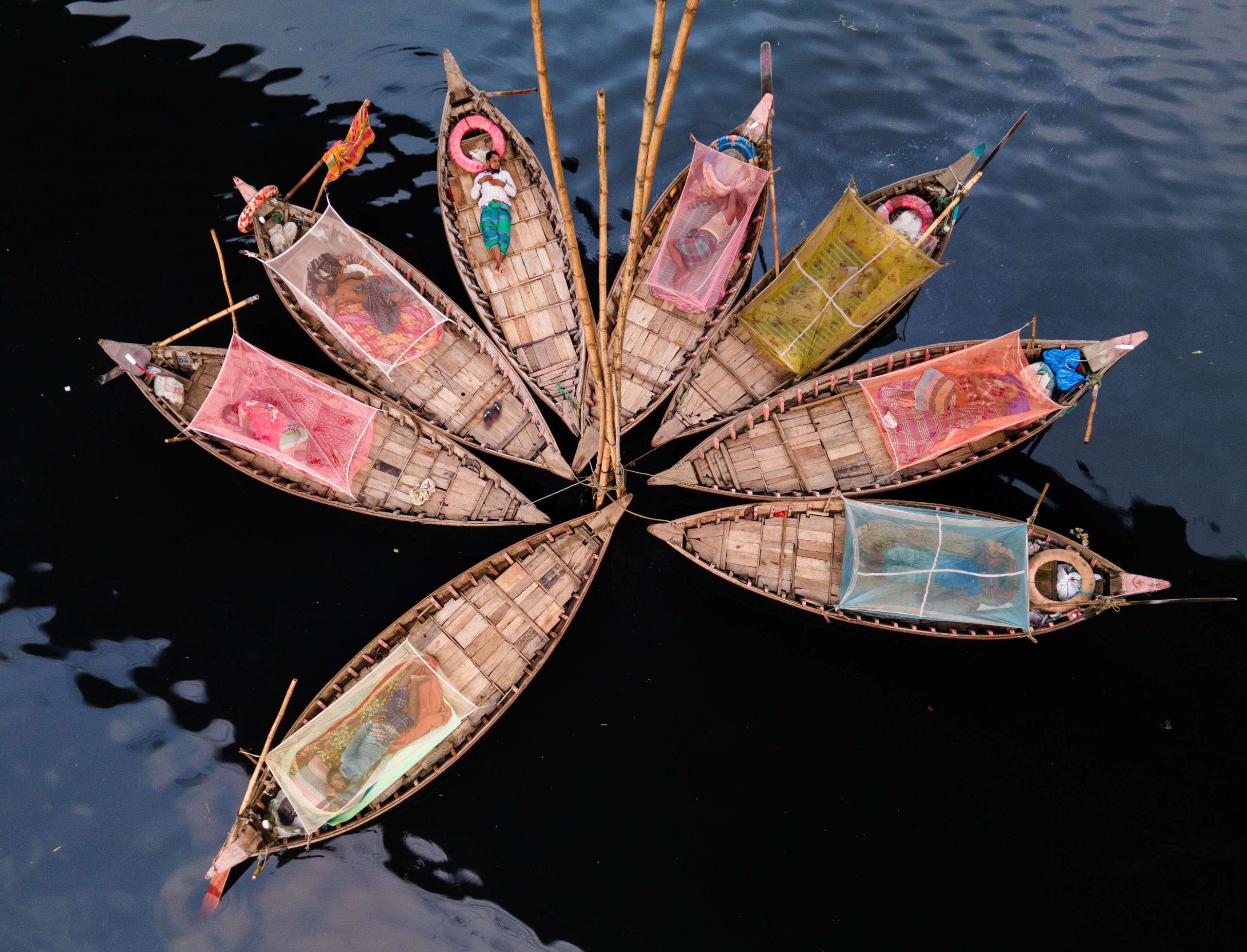 Capture Buriganga boatmen, riverside portraits, and human-interest moments.